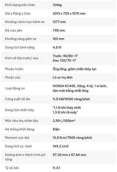 Động cơ DOHC 150cc đầy uy lực
